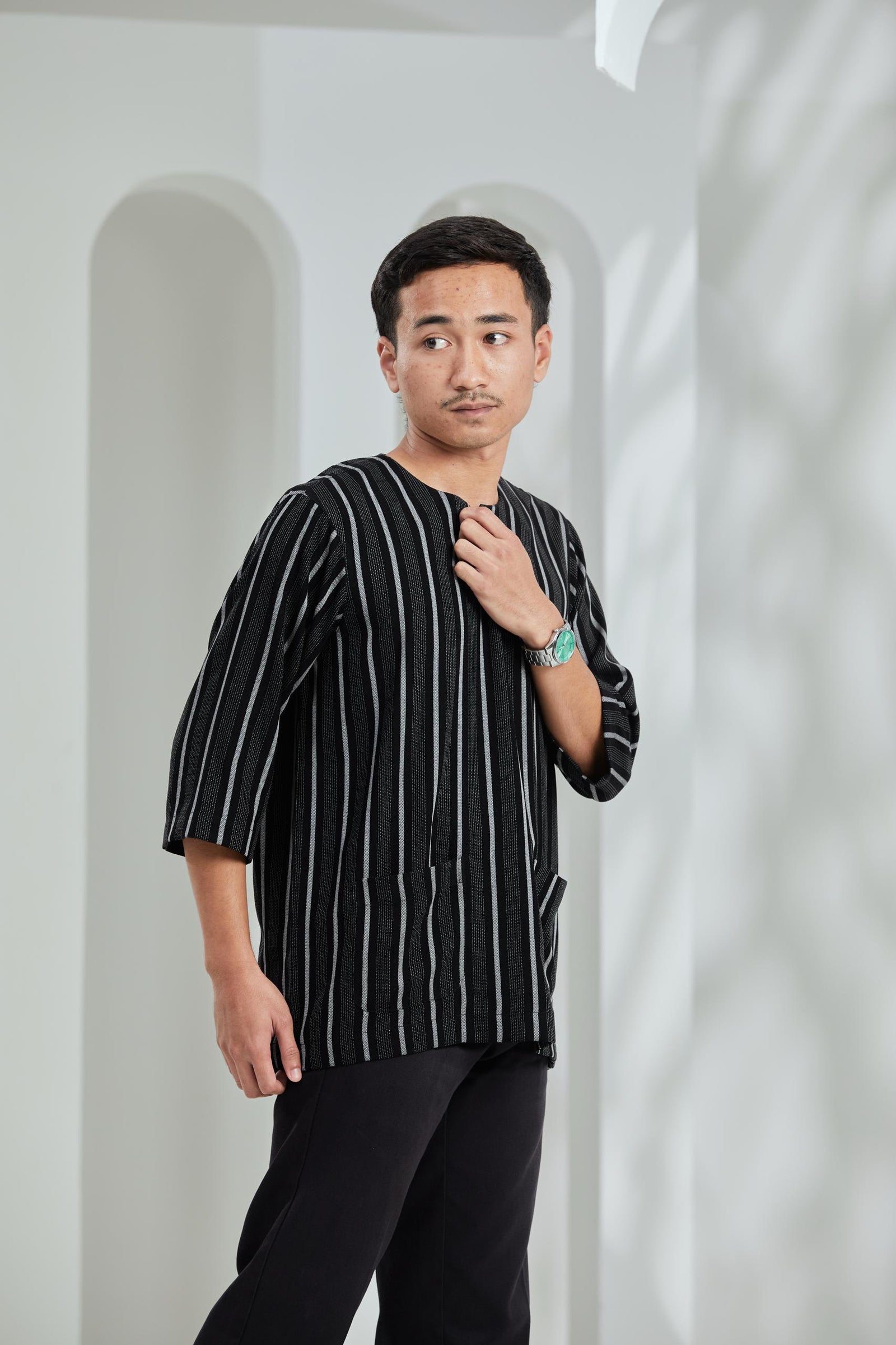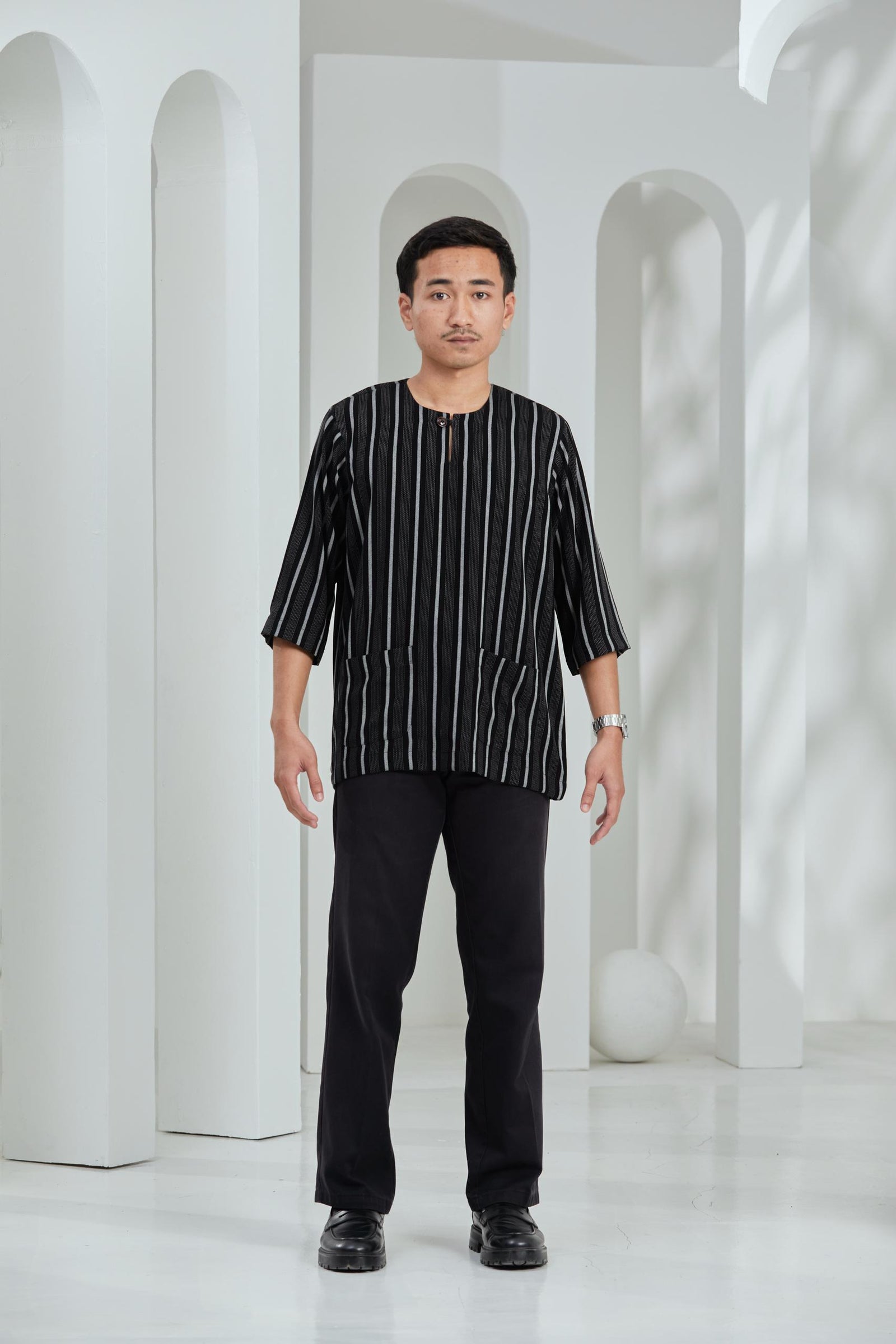 ARNA : Kurta Bayu in Black Stripe