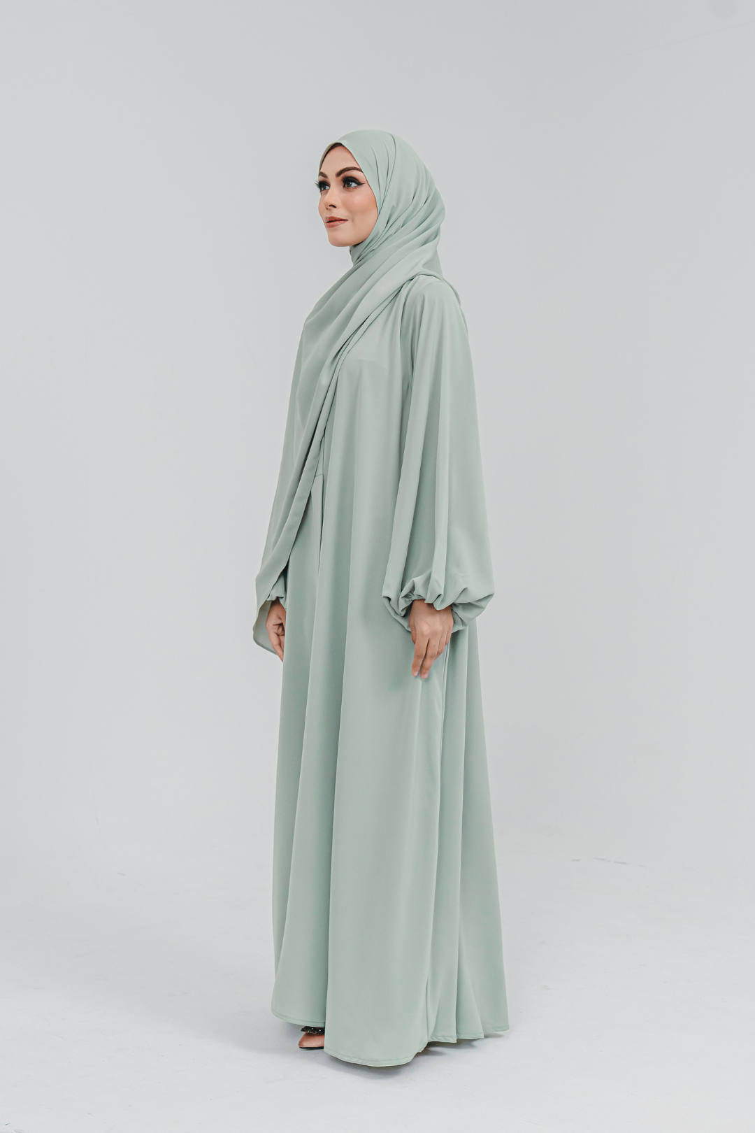 - Balloon sleeves with elastic cuffs, offering ease and comfort during wudhu.